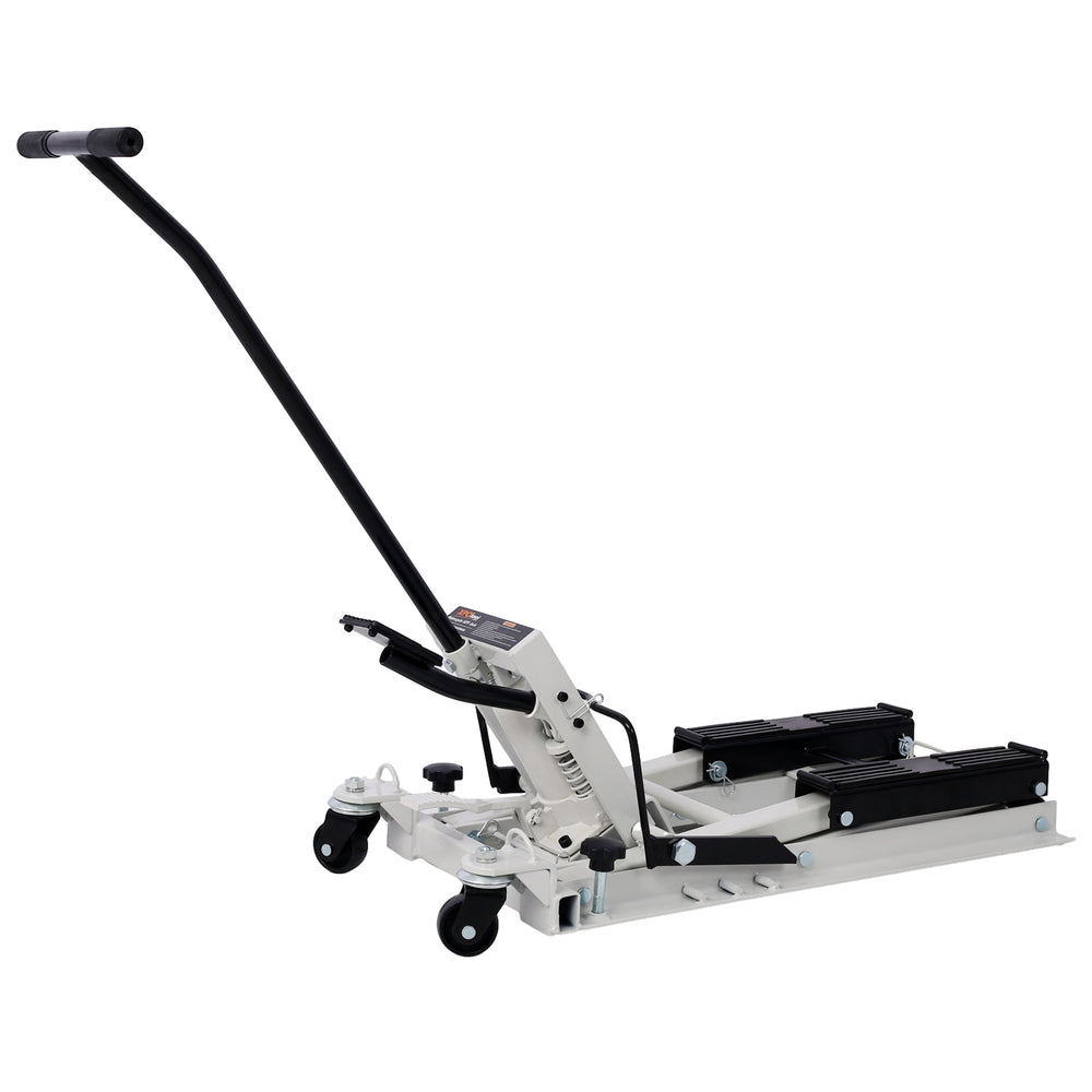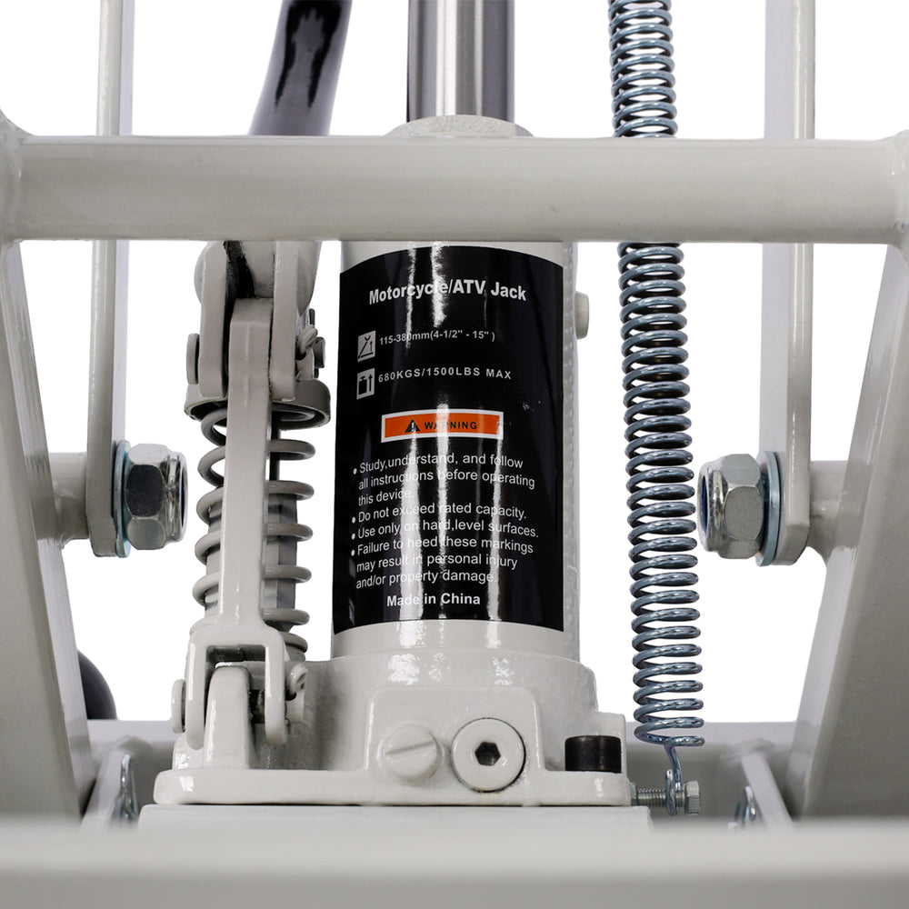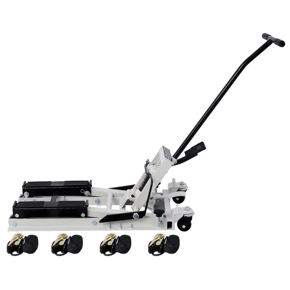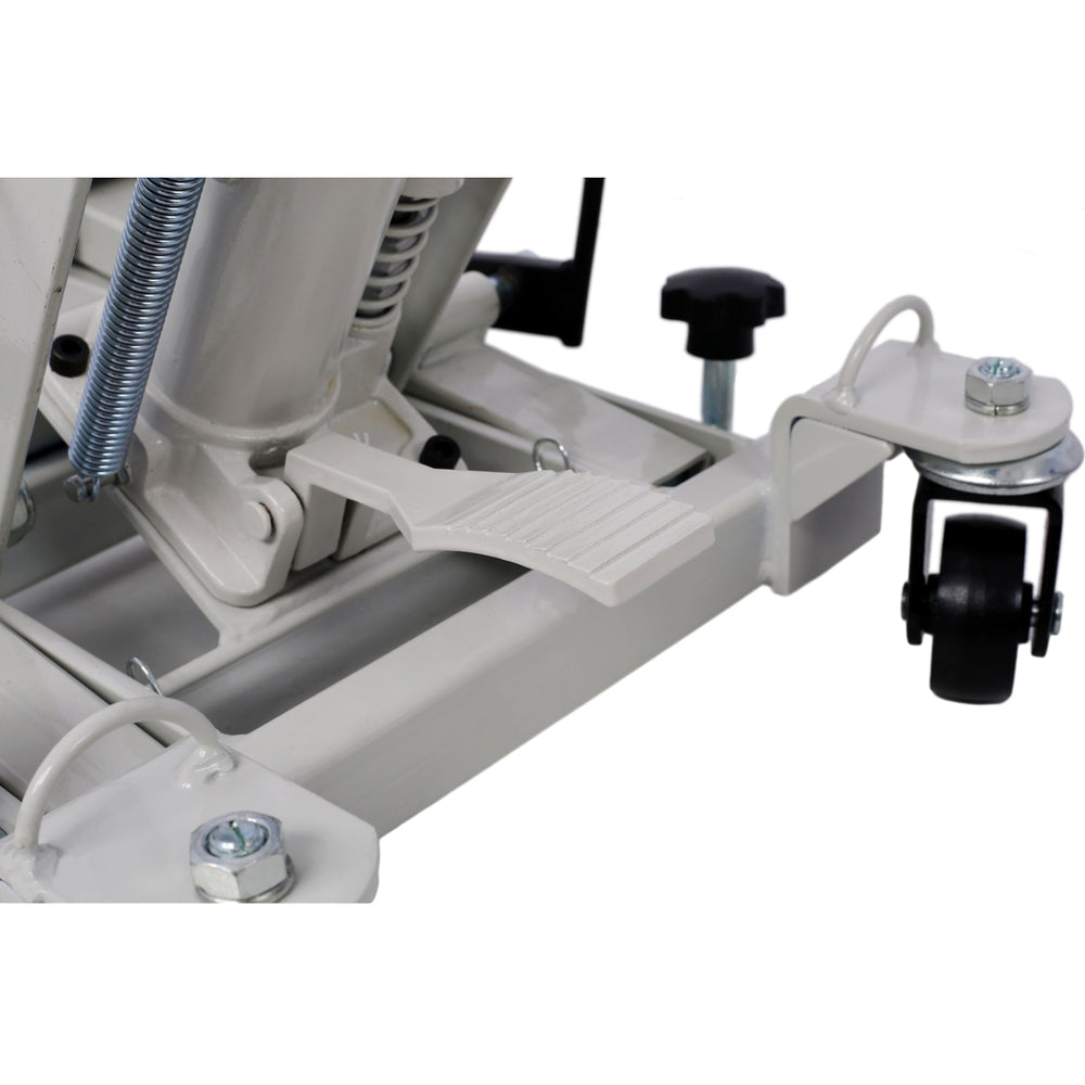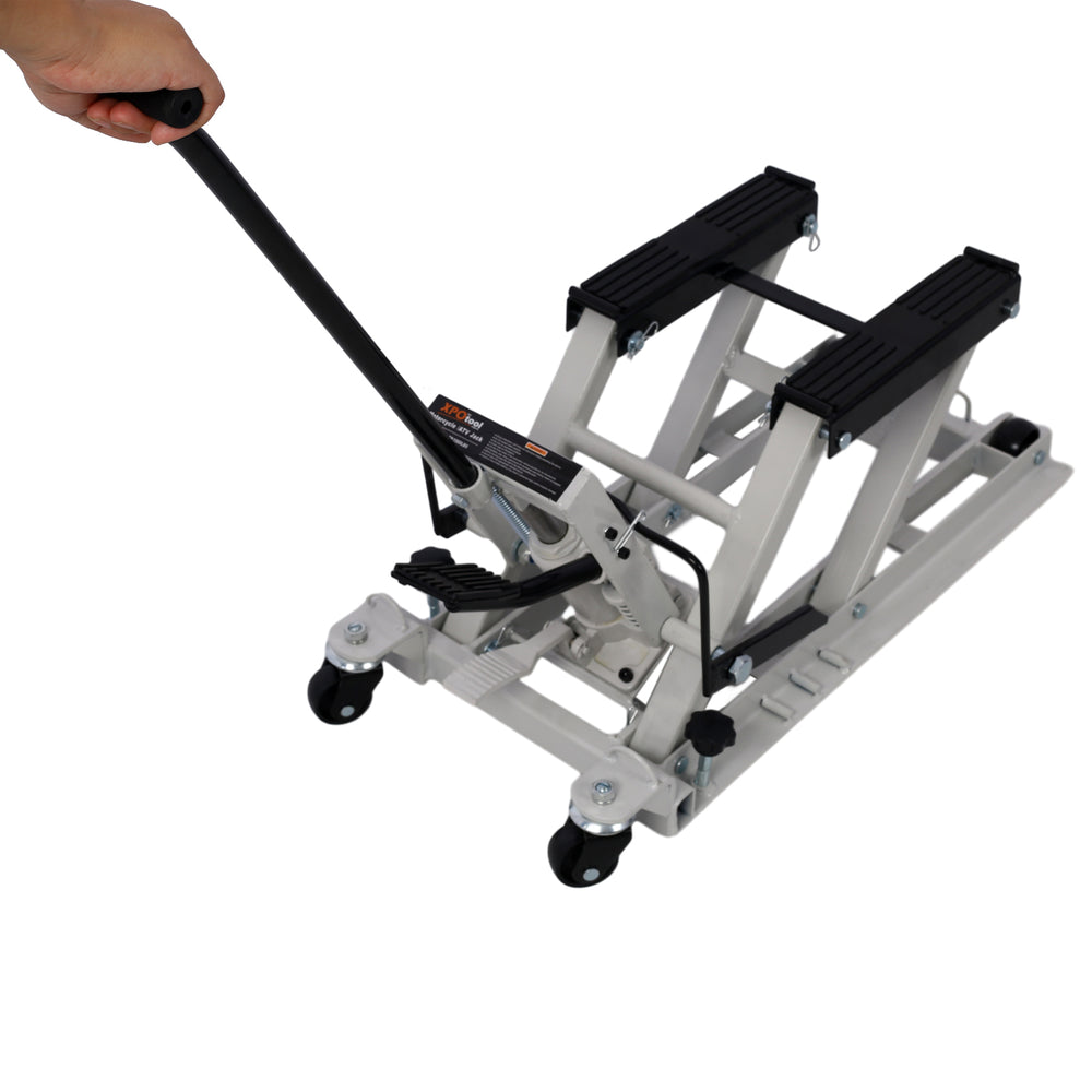 Hydrauliczny podnośnik motocyklowy Udźwig 1500 LBS Podnośnik ATV Przenośny stół z 4 kołami Podnośnik obsługiwany nożnie z 2 mocowaniami Szary