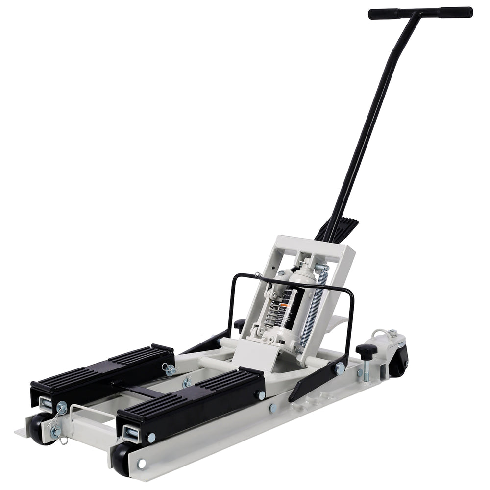 Hydrauliczny podnośnik motocyklowy Udźwig 1500 LBS Podnośnik ATV Przenośny stół z 4 kołami Podnośnik obsługiwany nożnie z 2 mocowaniami Szary jest zapoczątkowany i zostanie wysyłany, gdy tylko wróci do magazynu.