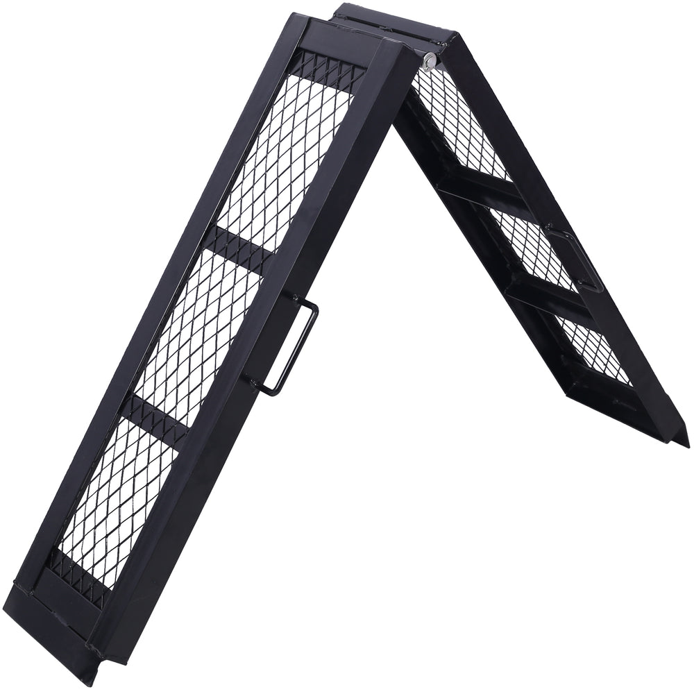 - Ulepszona konstrukcja funkcjonalna: Nasza składana rampa, wyposażona w solidne zawiasy, które umożliwiają wygodne składanie i przechowywanie bez zajmowania nadmiernej przestrzeni, została zaprojektowana z myślą o optymalnej funkcjonalności. Jej odporność na niekorzystne warunki pogodowe i łatwe czyszczenie sprawiają, że jest to wszechstronna i łatwa w utrzymaniu opcja. Siatkowa powierzchnia zapewnia niezawodną przyczepność i zapobiega gromadzeniu się zanieczyszczeń, a wydłużona tylna burta ułatwia załadunek sprzętu.