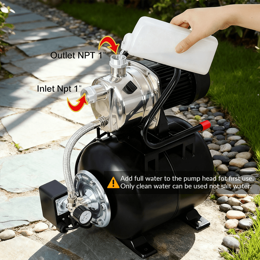 - 5. Durable and Easy to Install - The carbon ceramic mechanical seal effectively prevents water leakage and ensures a long service life for the pump. The 1" NPT outlet The pump should be primed before startup and kept from freezing in winter to ensure reliable operation. It is a powerful water pump suitable for residential use in homes, cabins or farms, garden irrigation, lawn sprinkler systems and general water transfer.