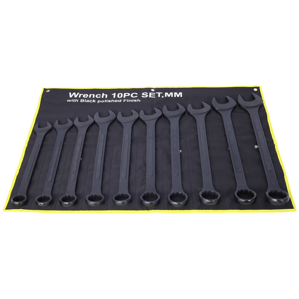 10 PCS Metric Jumbo Combination Wrench Set Extra Large Black-Oxide 34 36 38 41 42 44 45 46 48 50mm with Pouch