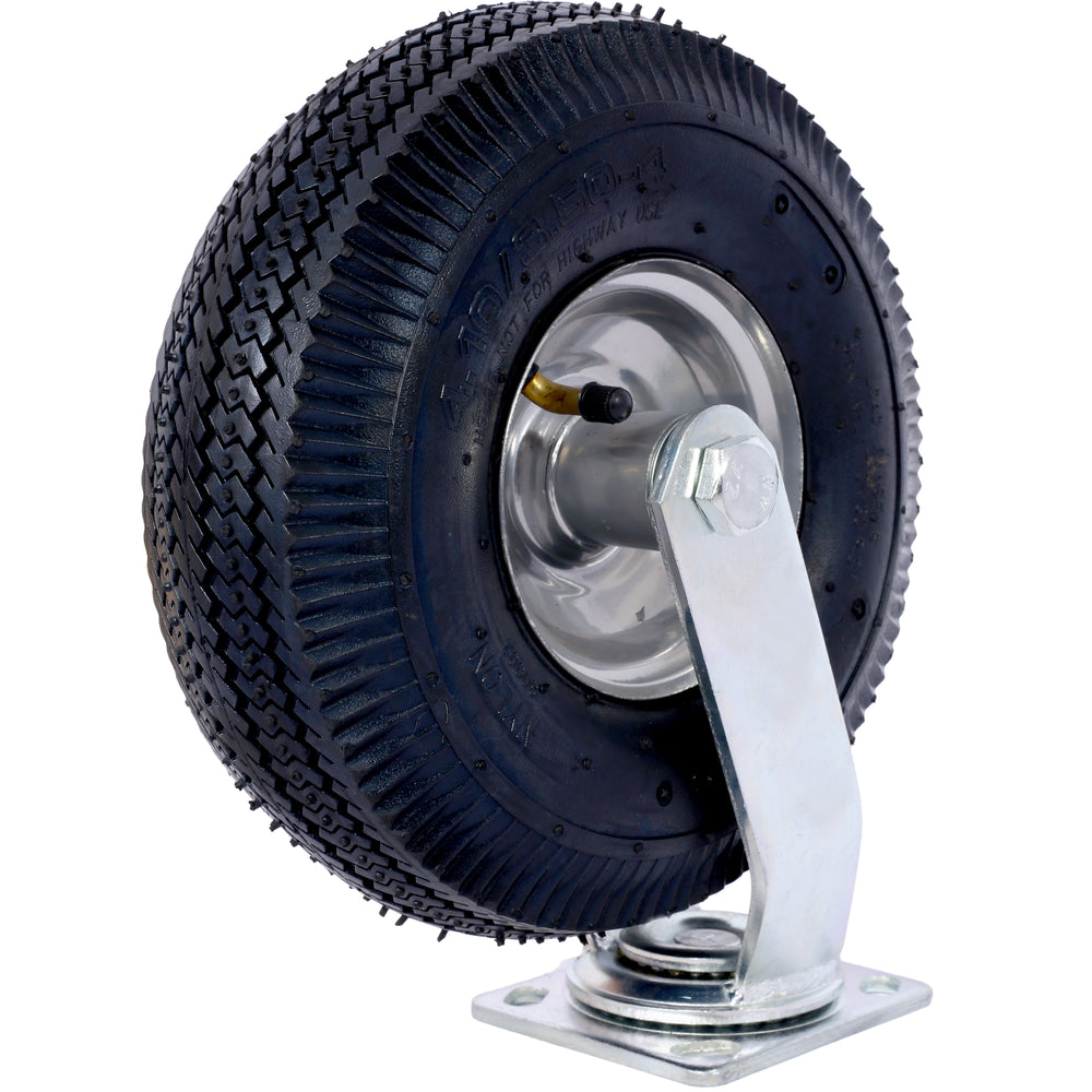 • High Load Capacity: With a 300-lb load capacity and a swivel plate, this pneumatic caster is designed to provide reliable support and maneuverability for a range of manual applications at low speeds, ensuring efficient and effective use.