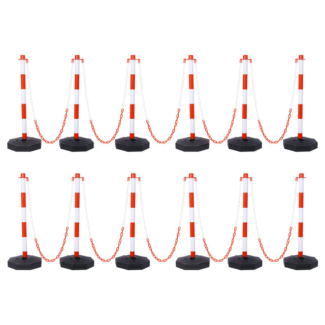 12 Pack Traffic Delineator Post Cones with Fillable Base Adjustable Safety Barrier with 5Ft Plastic Chain--White+Red