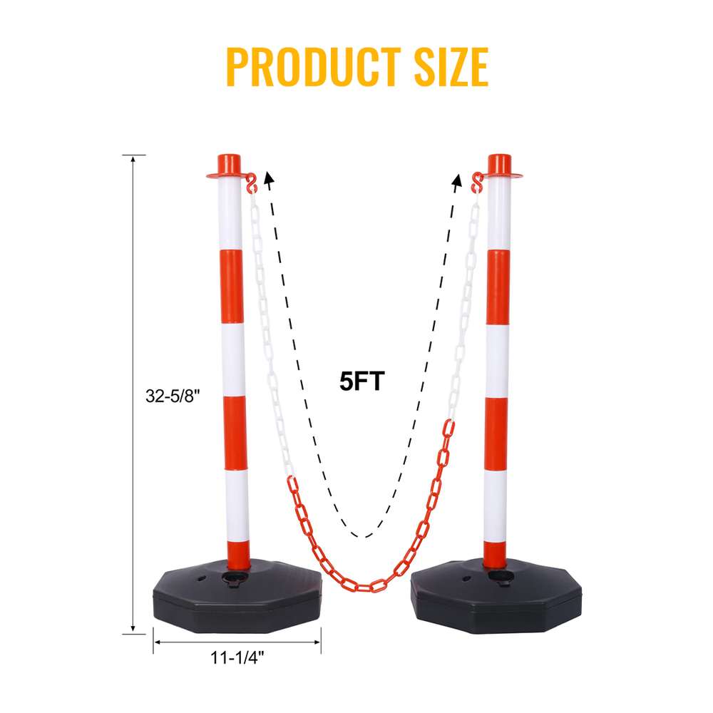 • HIGH-VISIBILITY WARNING COLORS: Designed with White and red stripes to maximize visibility, these stanchions serve as an effective warning signal. Easily connect them using the included S-hooks and chains to create a clear safety barrier.
