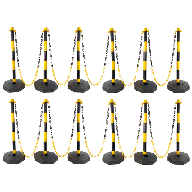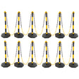 12 Pack Traffic Delineator Post Cones with Fillable Base Adjustable Safety Barrier with 5Ft Plastic Chain--Yellow+Black