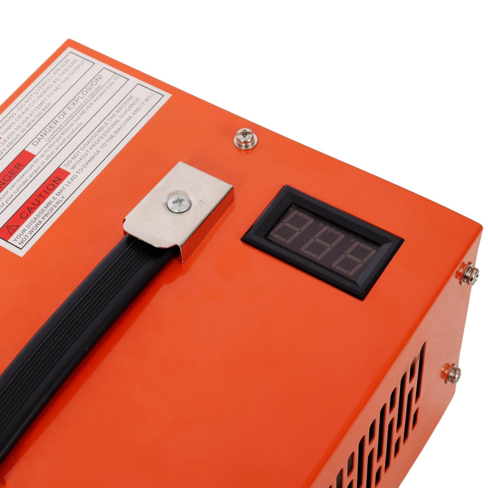 - Intelligent Dual Display The PCP air compressor has an intelligent dual display system that displays pressure and temperature values in real time. With 30 Mpa maximum pressure, it perfectly meets the needs of various air guns. Maximum temperature: 80℃