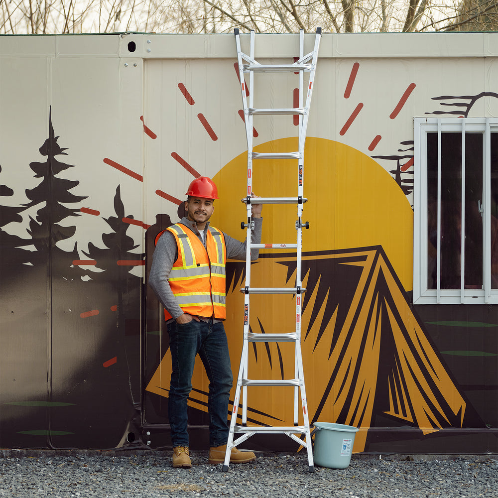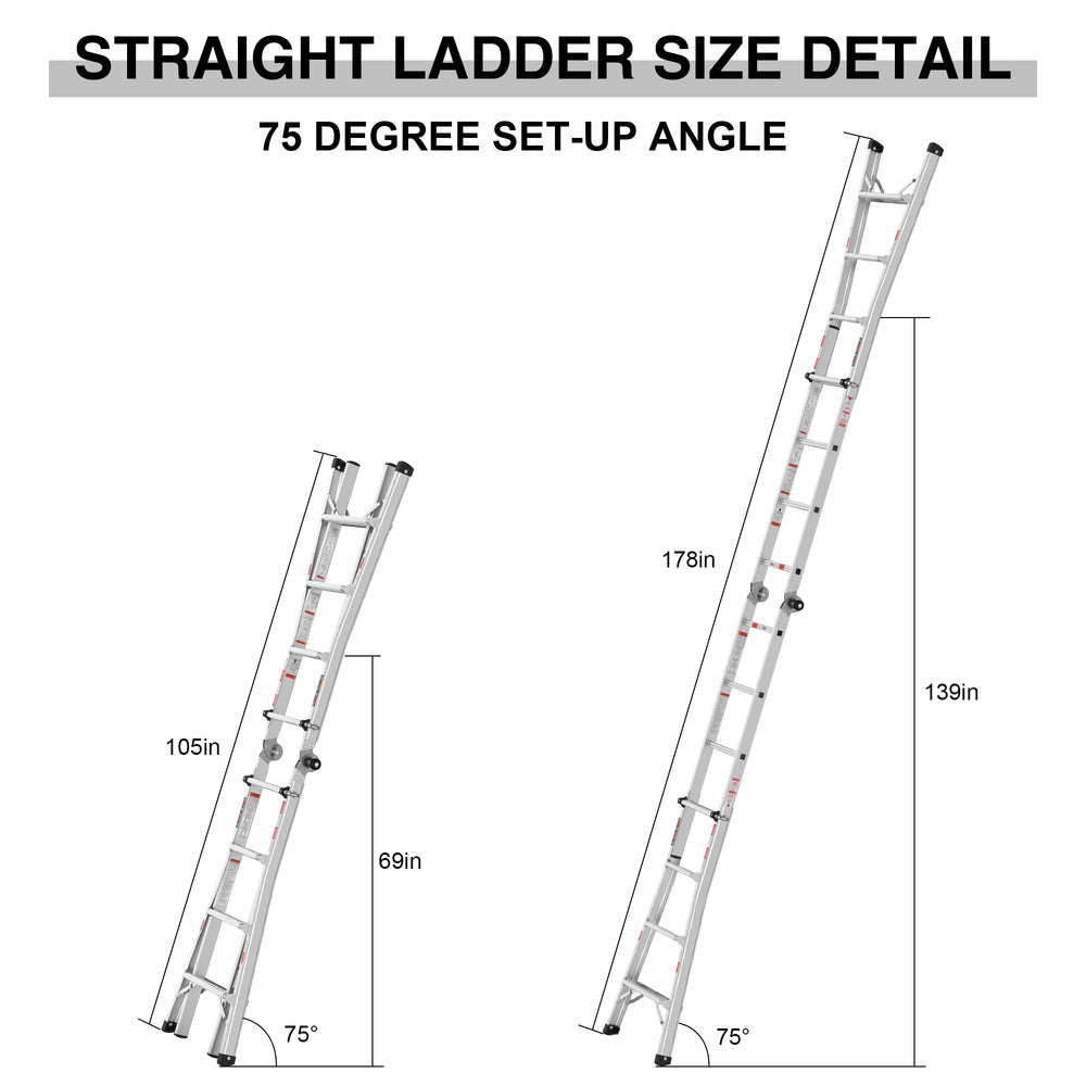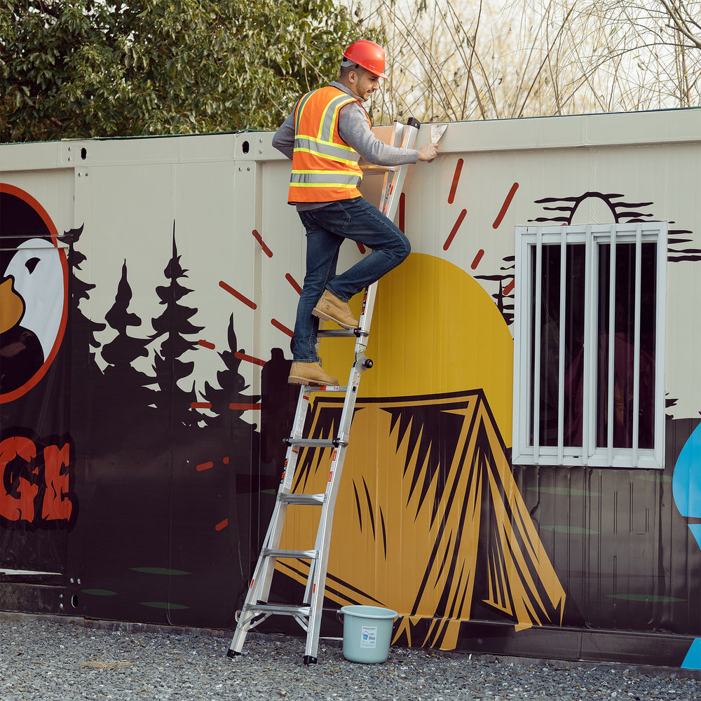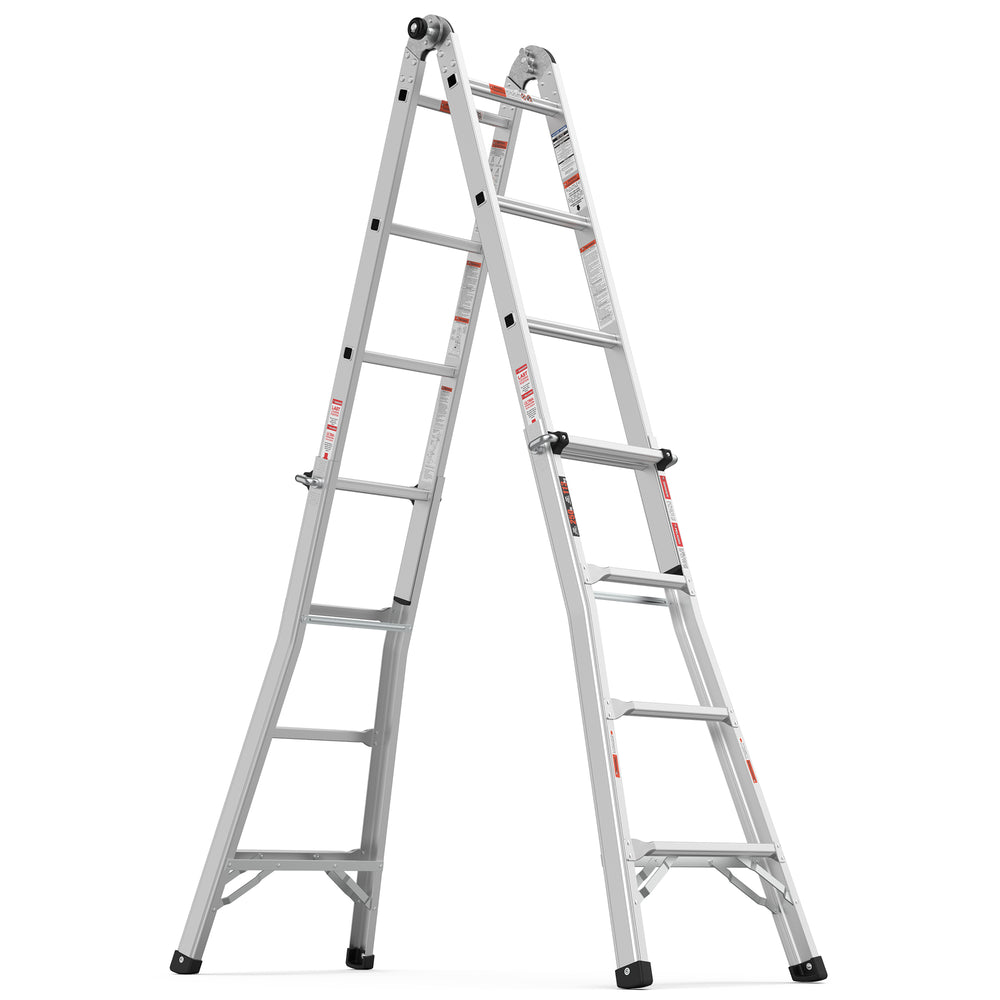 - 【MULTIPLE FUNCTIONS】This adjustable ladder can be as an A-frame ladder, trestle-and-plank,an extension ladder, a staircase and 90-Degree ladder. Perfect for replacing light bulbs, repairing roof, decorating birthday parties, painting walls, washing windows, etc.