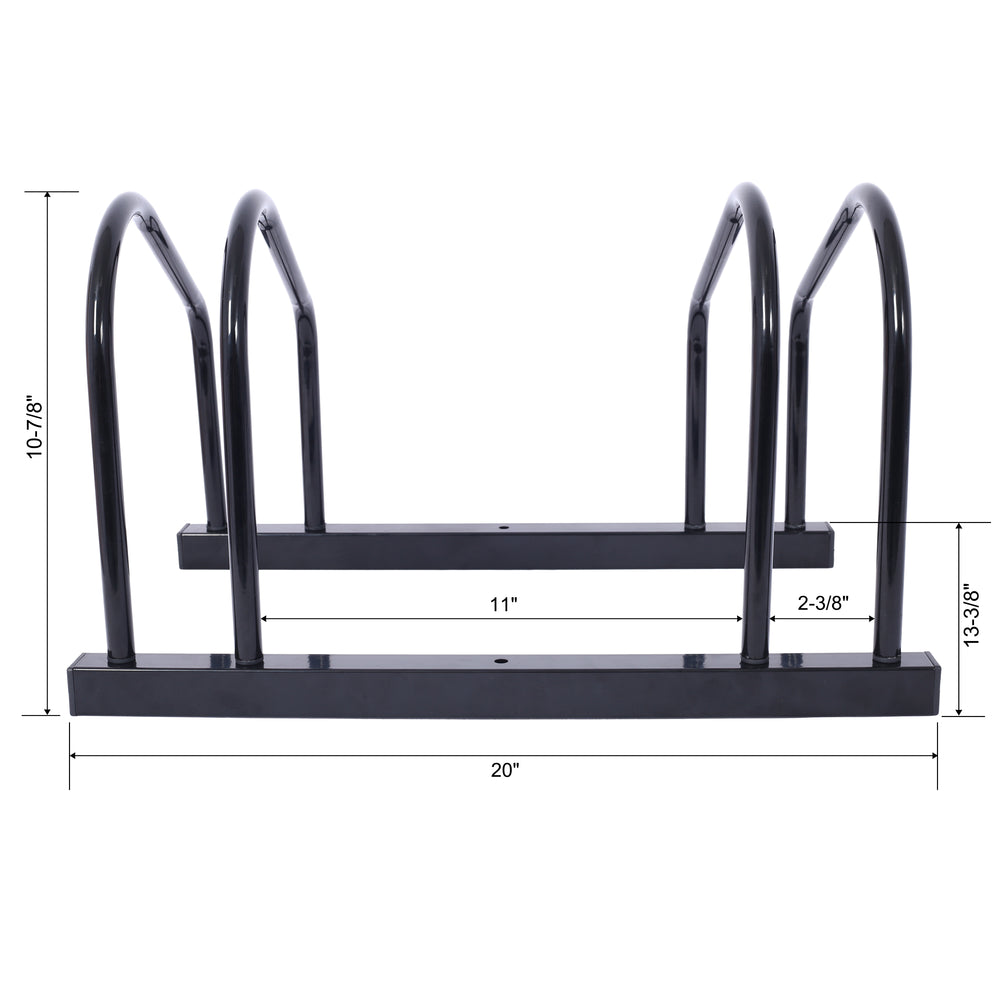 2 Bikes Floor Bike Stand Parking Rack 22-28" Wheel Max Tire Width 2.15" Black Painted