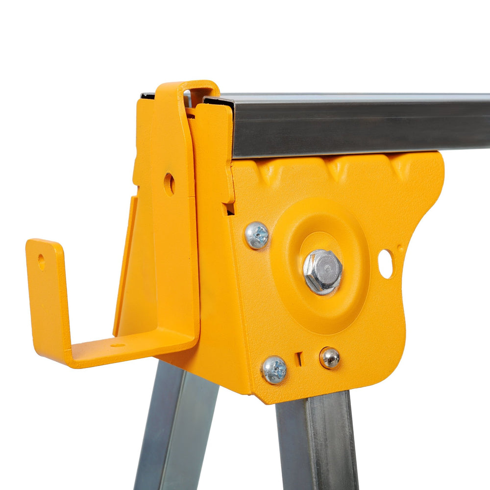 - Our sawhorse stand is equipped with an intuitive foldable design, crafted to solve the common hassle of bulky tool storage—making it a game-changer for garages, small workshops, or job sites with limited space. Unlike traditional non-foldable sawhorses that take up permanent floor space, this model lets you collapse it in seconds with a simple, one-handed operation.