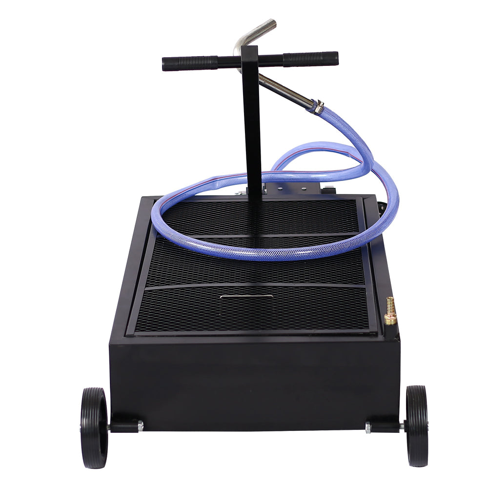 - Our oil drain pan is constructed with two 6'' wheels and two 3'' swivel casters for smooth operation and movement.