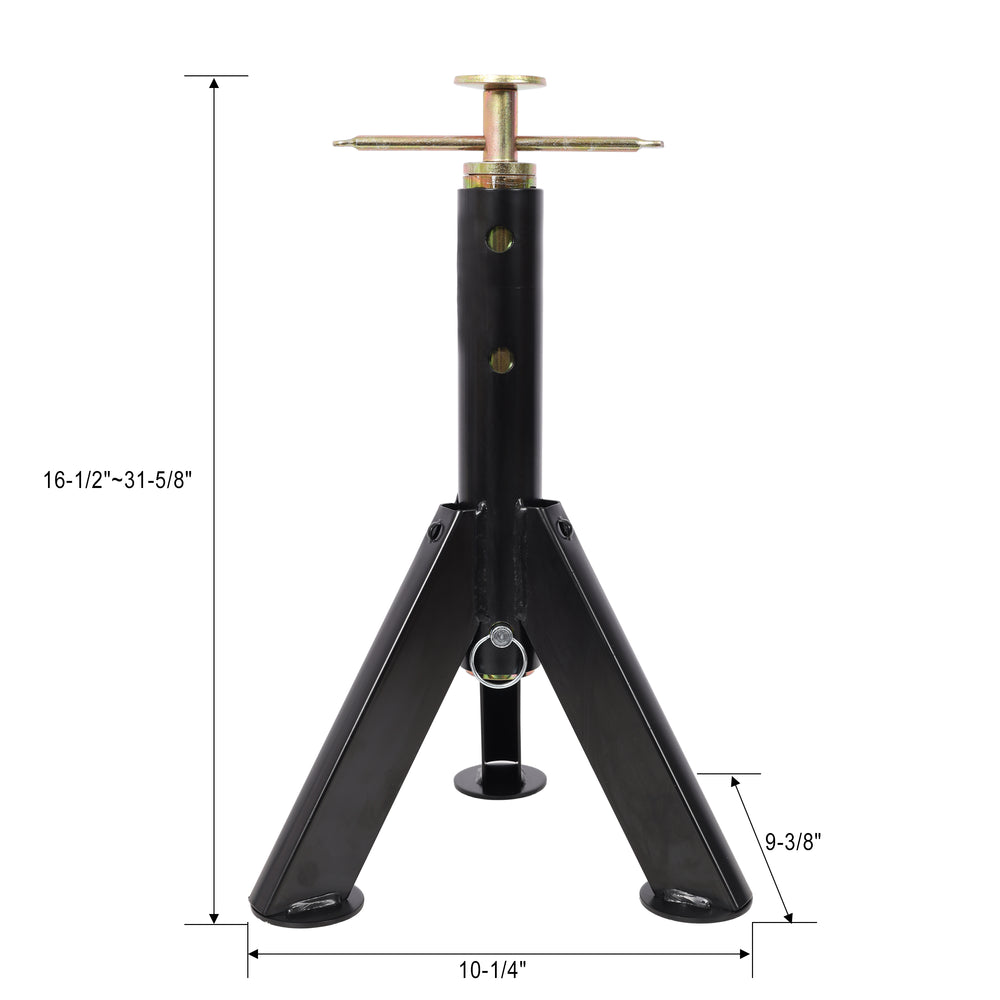 - Our adjustable jacks that offer a significant height adjustment range. Users can seamlessly modify the height from 16 inches to 31 inches. This wide adjustability is engineered to precisely accommodate diverse requirements, making it an ideal fit for working on various sizes of RV vehicles. Whether servicing smaller, compact RVs or larger, more substantial models, the adjustable jacks ensure that the workbench can be set to the optimal height for safe, efficient, and comfortable operations.