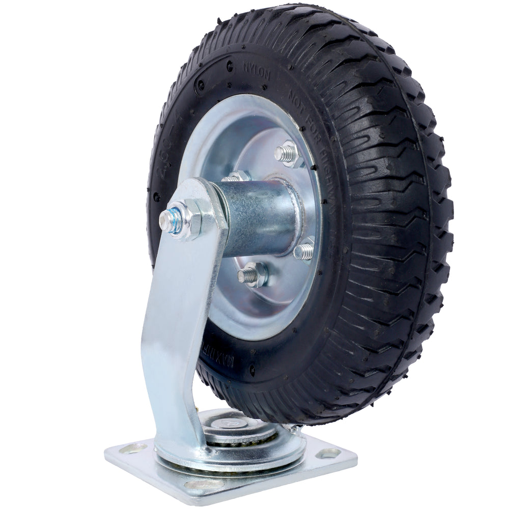 • High Load Capacity: With a 220-lb load capacity and a swivel plate, this pneumatic caster is designed to provide reliable support and maneuverability for a range of manual applications at low speeds, ensuring efficient and effective use.