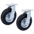 2PCS 8IN Pneumatic Tire Caster Wheel Swivel Plate Steel Hub with Ball Bearings 5/8-Inch Bore Centered Axle Black