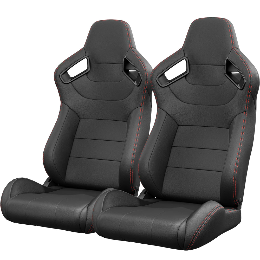 - ☑️High Quality - Comes in a pair of racing seats for driver side and passenger side. The seats is upholstered with premium PVC leather, the exquisite stitch makes the racing seats look luxury, durable frame brings reliable seating experience. Upgrade your car with an aggressive look.