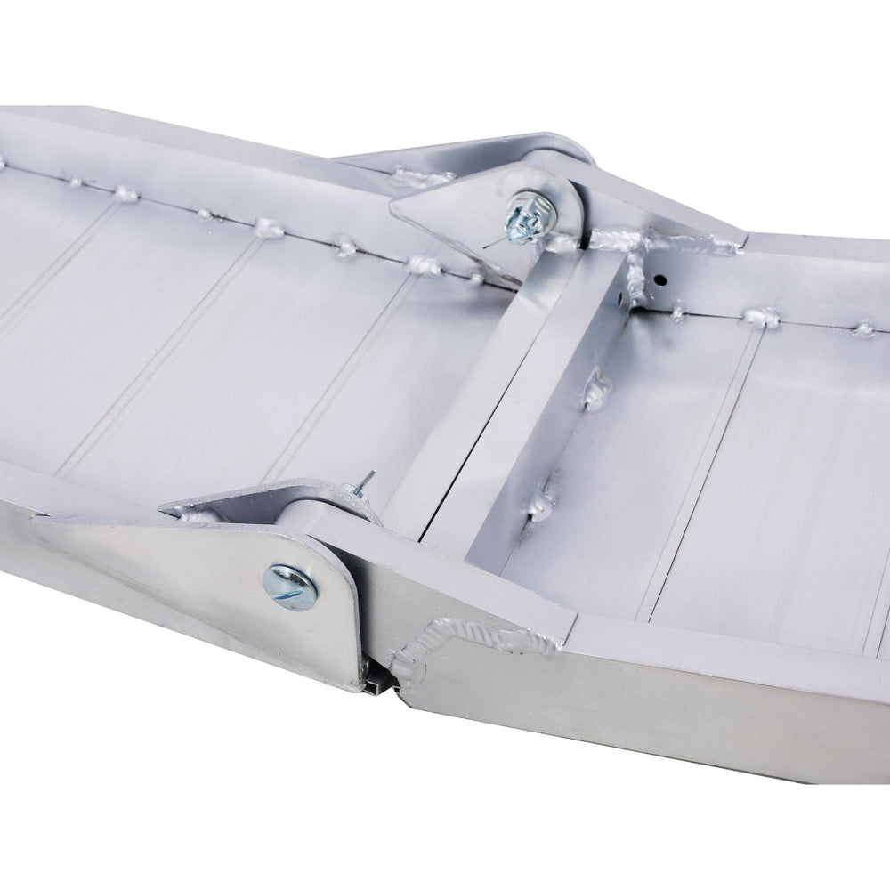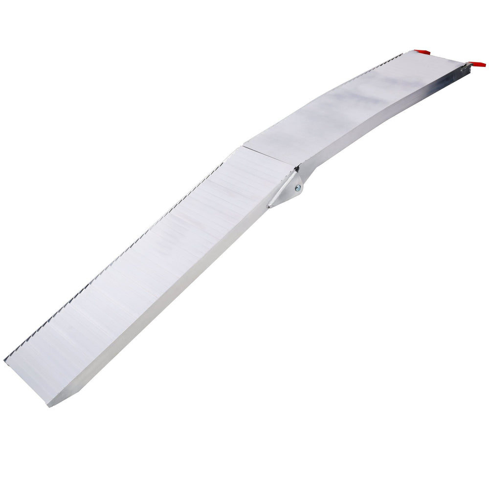 - 【Lightweight & Portable】Crafted from high-strength aluminum alloy ,the loading ramp is both durable and lightweight. It unfolds to a generous size but can easily be folded for compact storage and portability. Fits most rear compartments for hassle-free transport.