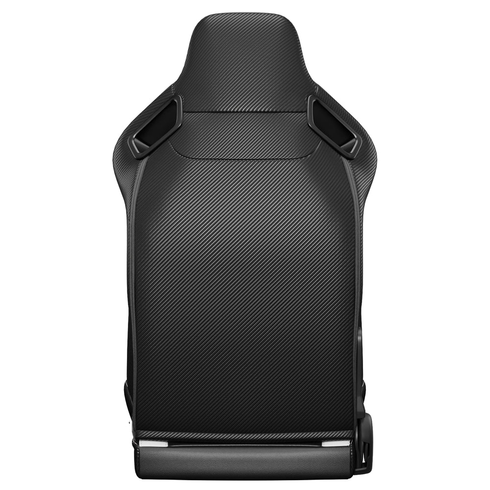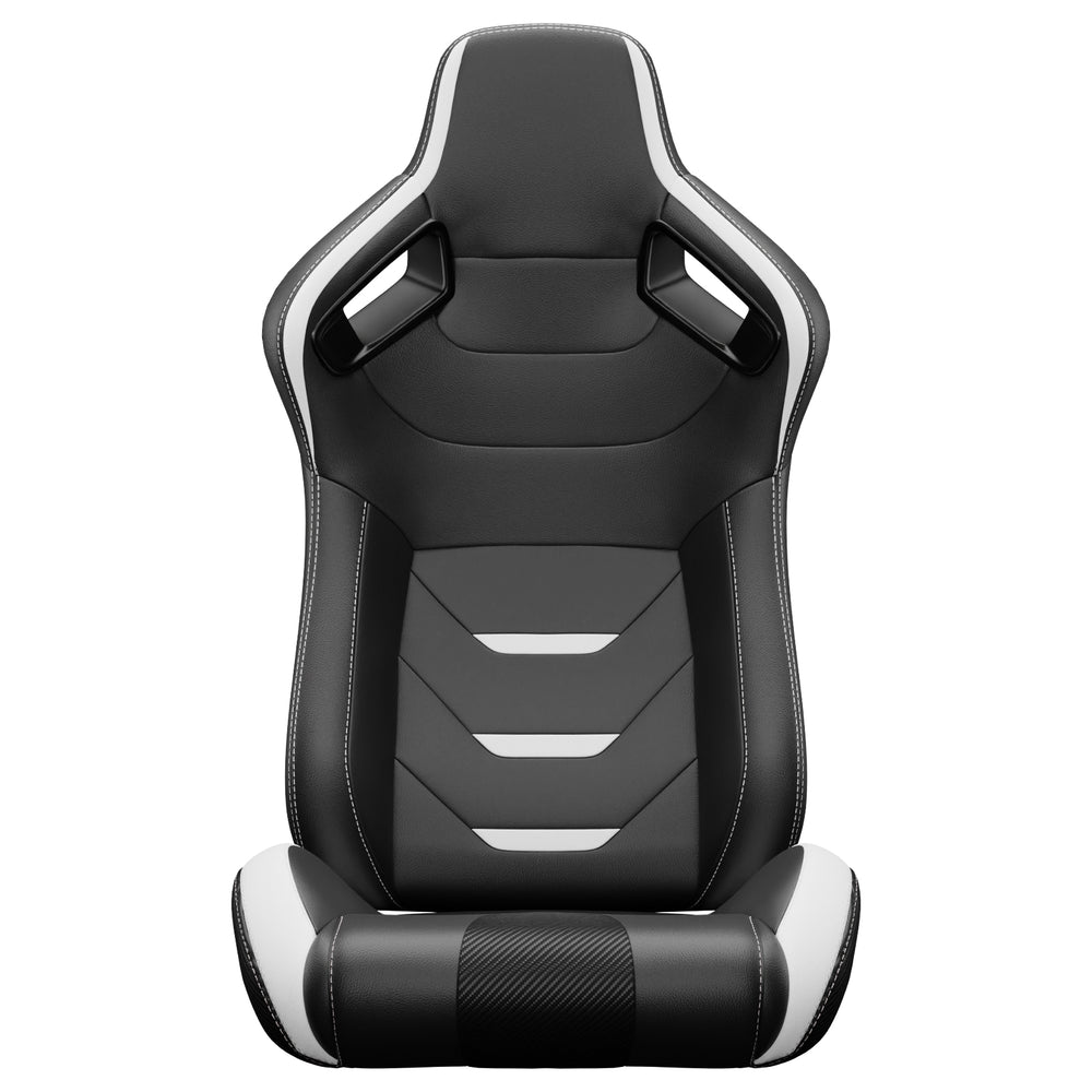 2PCS Universal Bucket Racing Seats White Stitch PVC Leather Reclinable Carbon Look Leather Back With Adjustor Slider(Not Including Seat Bracket)