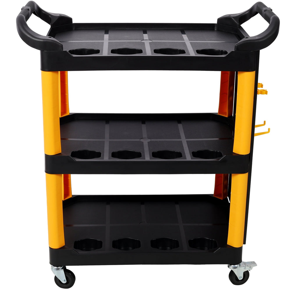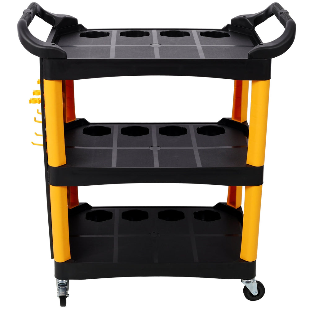 3 Tier Rolling Auto Detail Cart with Wheels & Panel & Hook--Yellow&Black