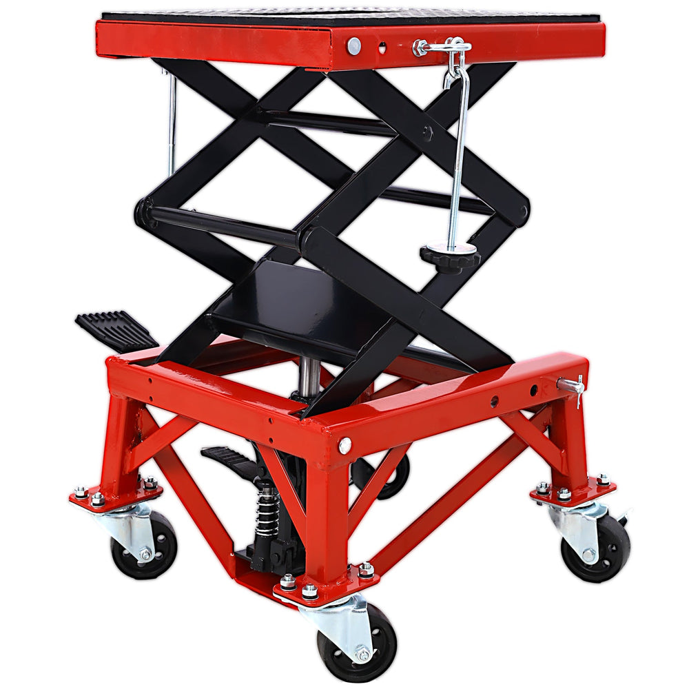 300 lbs Hydraulic Motorcycle Scissor Jack Lift Foot Step Wheels--Red