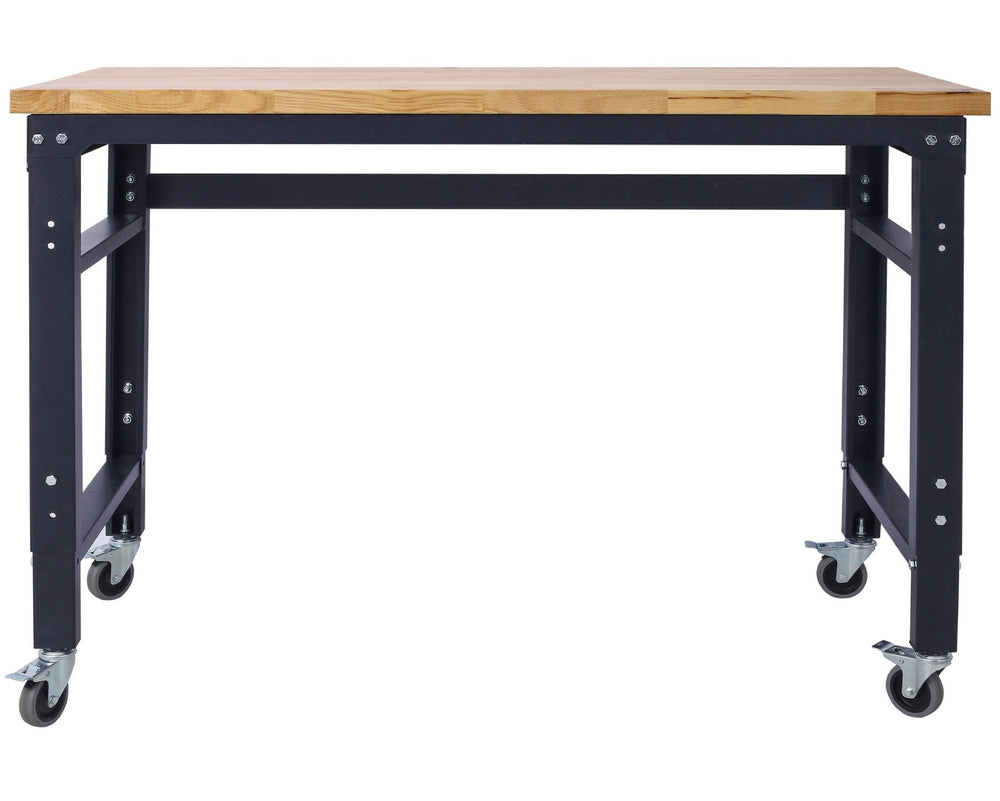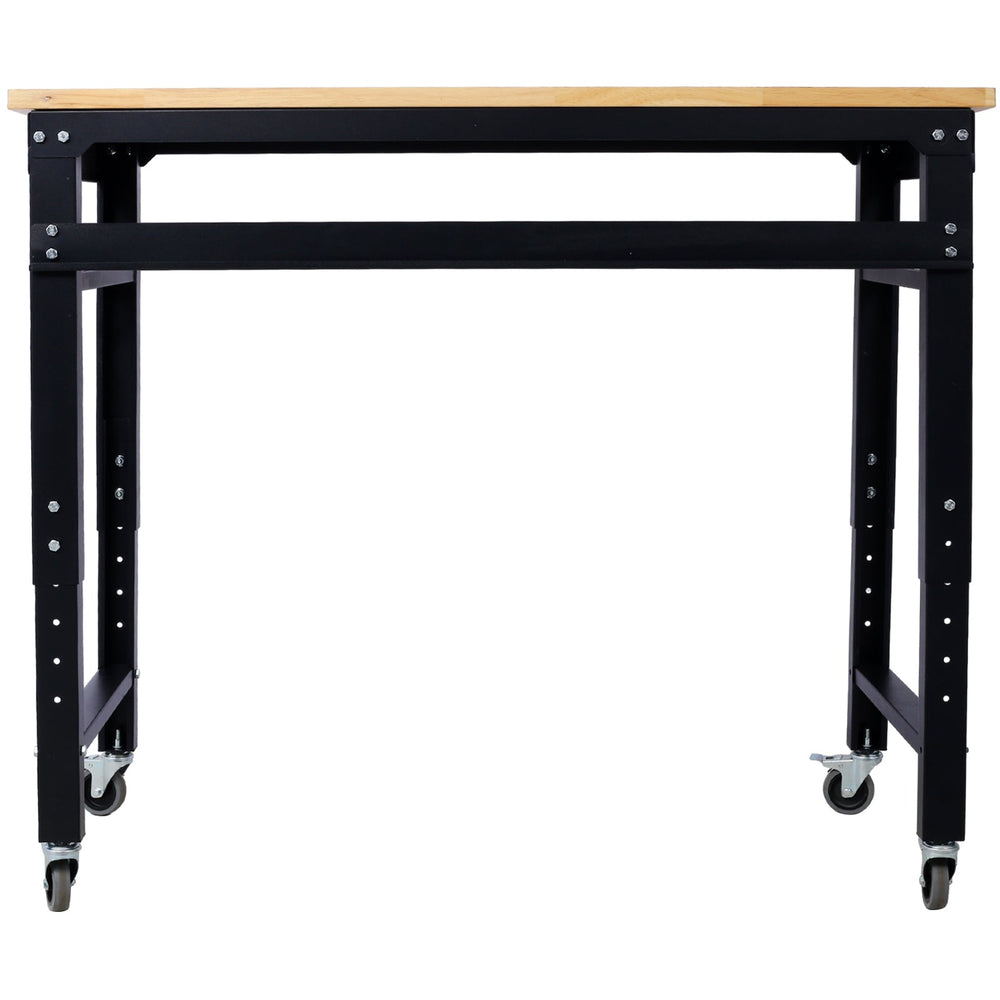 48' Wide Rolling Workbench Adjustable Height Metal with Rubber Wood Top