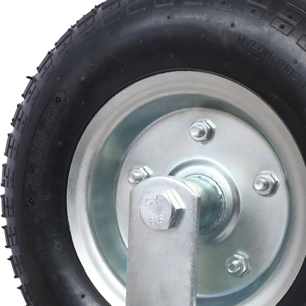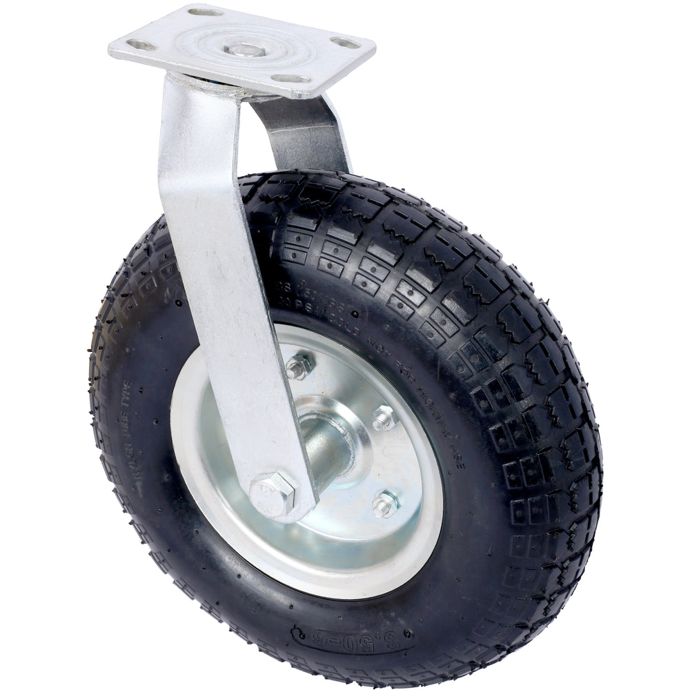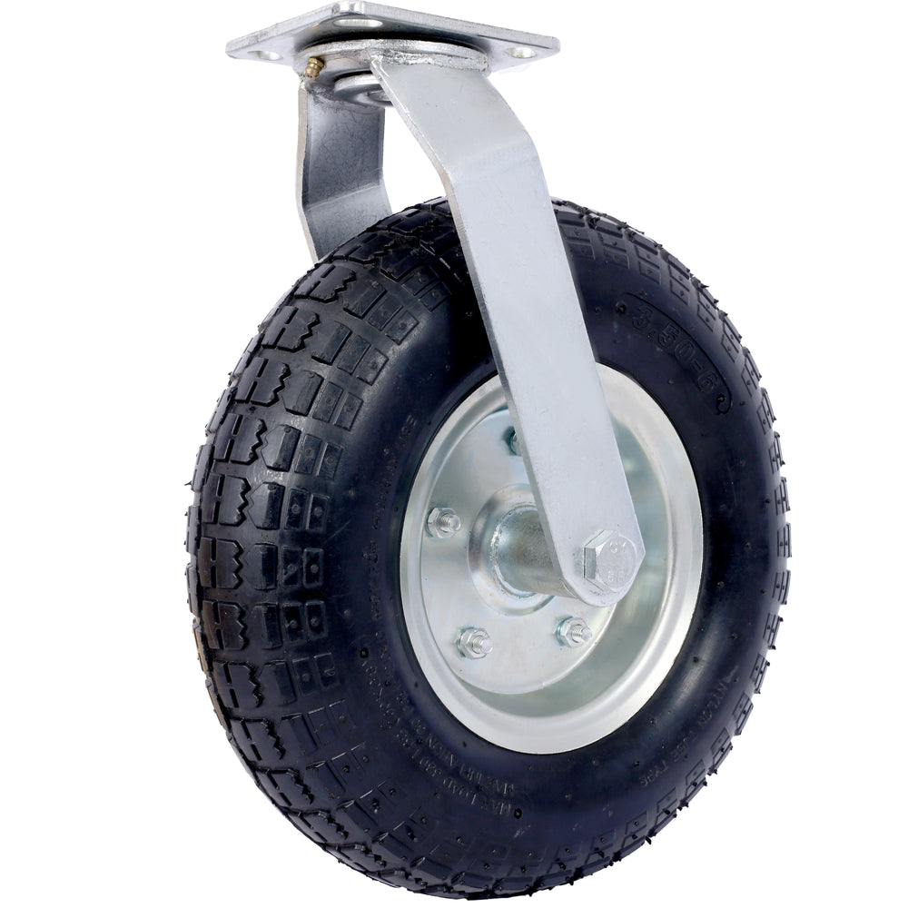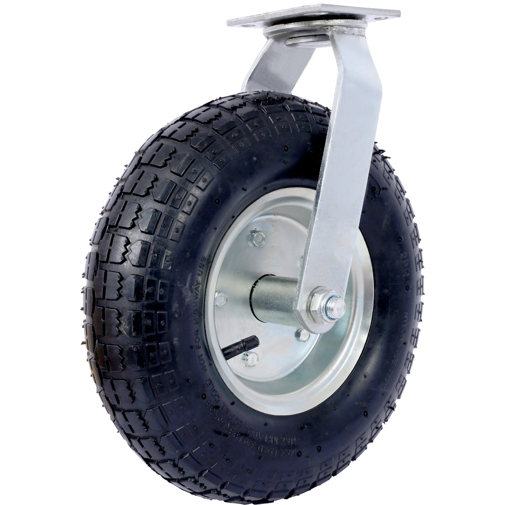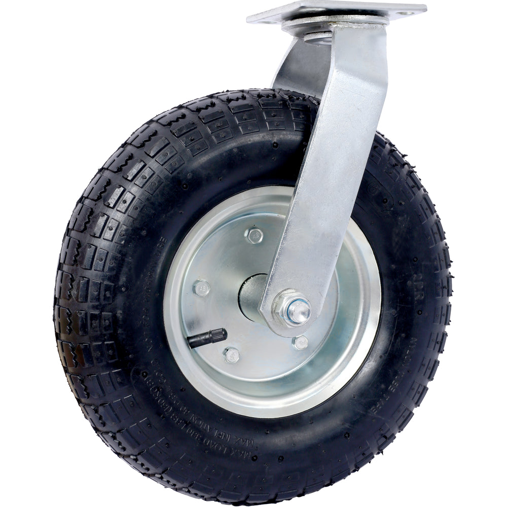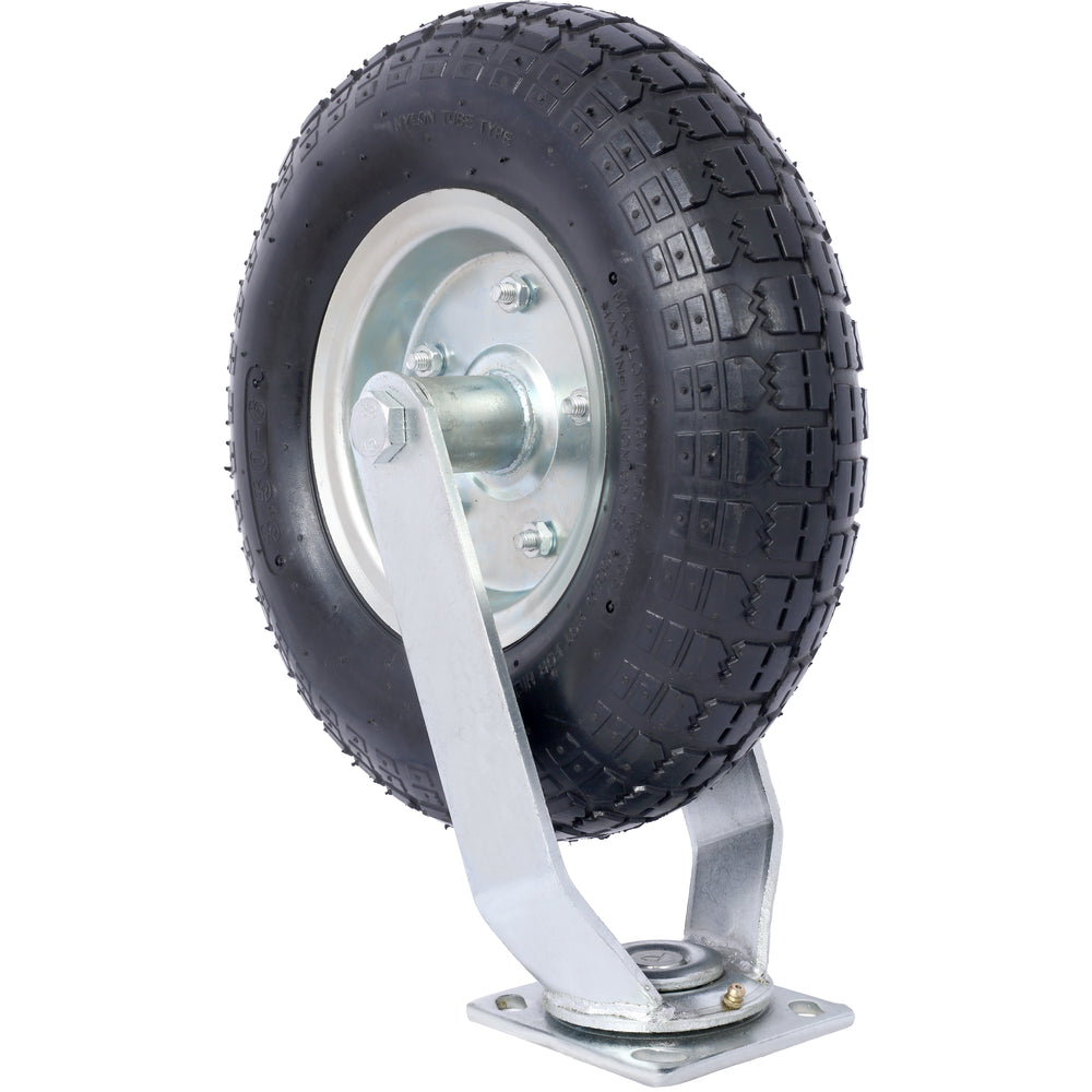- High Load Capacity: With a 300-lb load capacity and a swivel plate, this pneumatic caster is designed to provide reliable support and maneuverability for a range of manual applications at low speeds, ensuring efficient and effective use.
