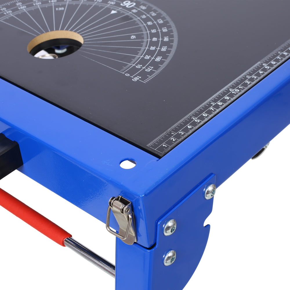 - Robust Steel Frame & Reversible PanelThe sturdy light metal frame supports up to 330 lbs, providing a solid and durable work surface. Locking legs ensure stability during use, while the detachable countertop features two different surfaces: one side with an anti-skid grain for heavy-duty tasks, and the other side with a scale (up to 30.8" or 78 cm) and a protractor for precise measurements.