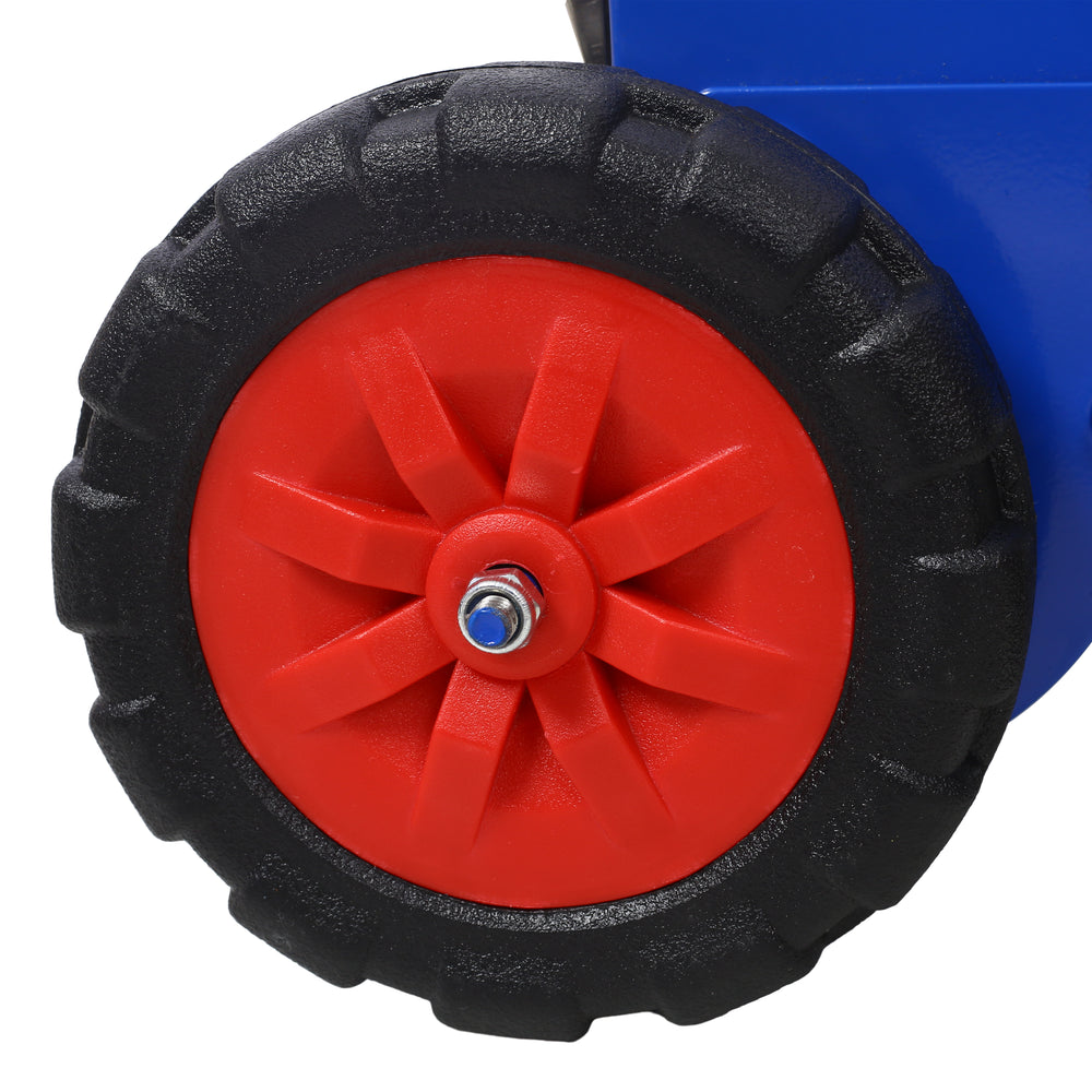 - Super MobilityEquipped with two swivel casters and two large anti-slip wheels, this workbench offers excellent mobility. It can be used as a creeper or dolly when folded. The swivel casters provide easy maneuverability, while the large anti-slip wheels ensure smooth rolling over uneven terrain, making it easy to navigate through bumps and pits.