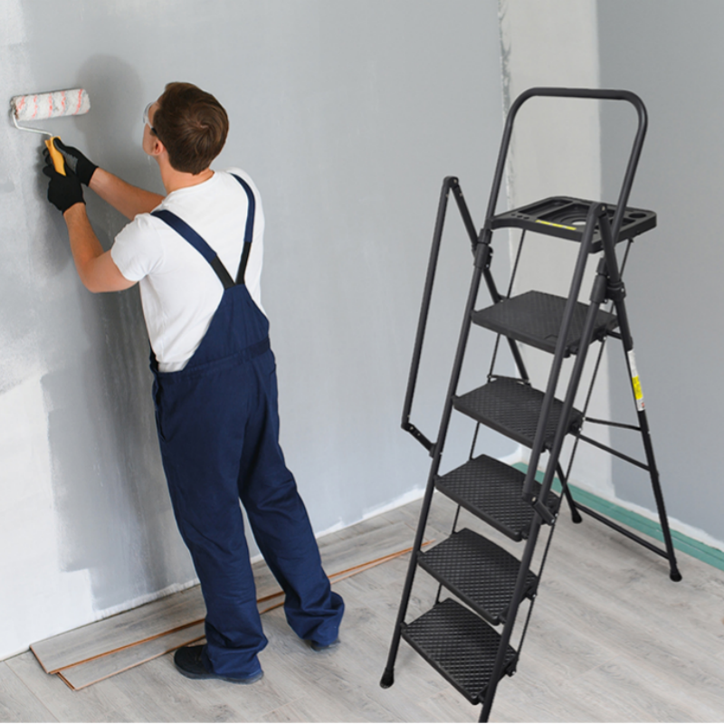 5-Step Ladder Foldable Step Stool with Tool Tray and Wide Non Slip Pedals Sturdy Steel