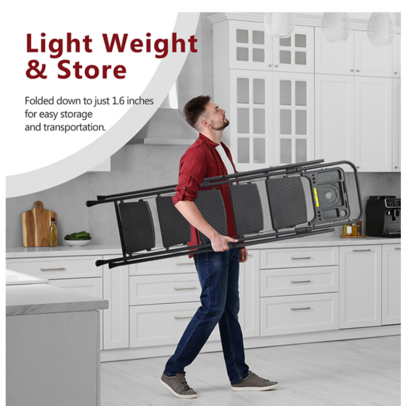 - PORTABLE AND SPACE-SAVING: This Folding Step Stools comes fully assembled. Lock and open system for easily open and fold. Easy to transport and carry, suitable for indoor and outdoor use.