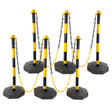 6 Pack Traffic Delineator Post Cones with Fillable Base Adjustable Safety Barrier with 5Ft Plastic Chain--Yellow+Black