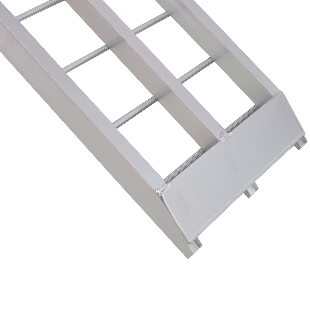 7.5FT 1 Pair Aluminum Loading Ramps with Safety Straps 1500 Lbs Capacity Per Pair - Silver - Fab Heavy Parts
