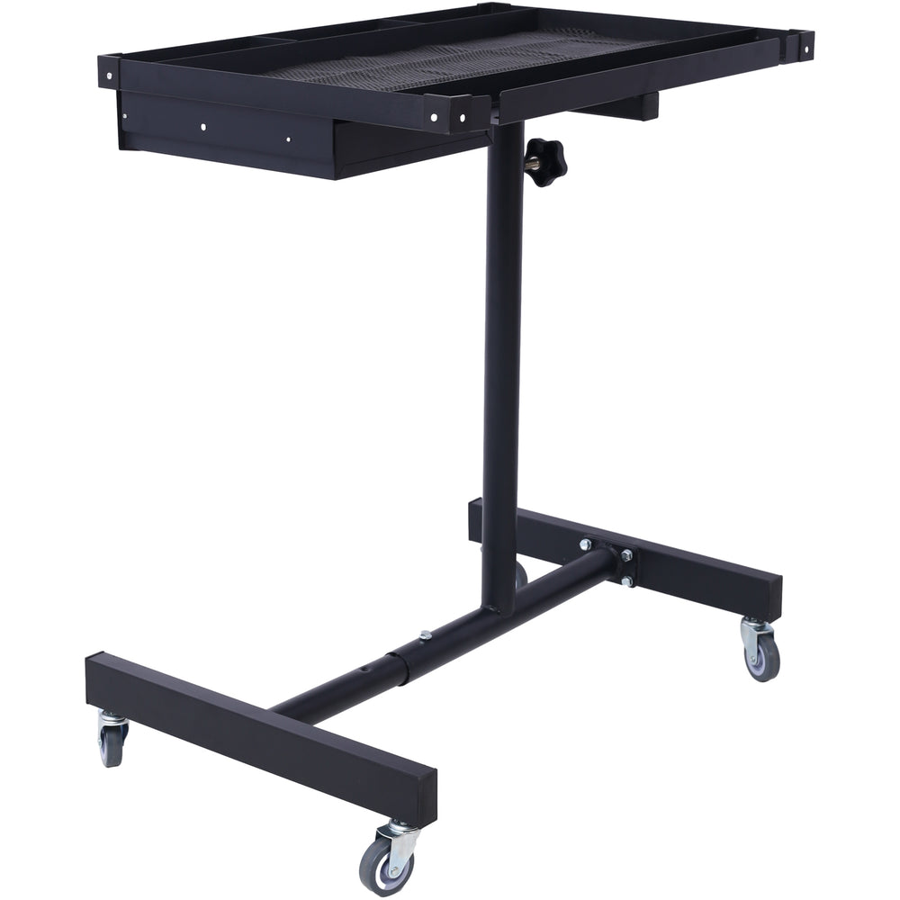 Adjustable Tear Down Work Table with Drawer (4) 2.5" Swivel Casters 220 Lbs Capacity Rubber Corners Heavy Duty Steel--Black