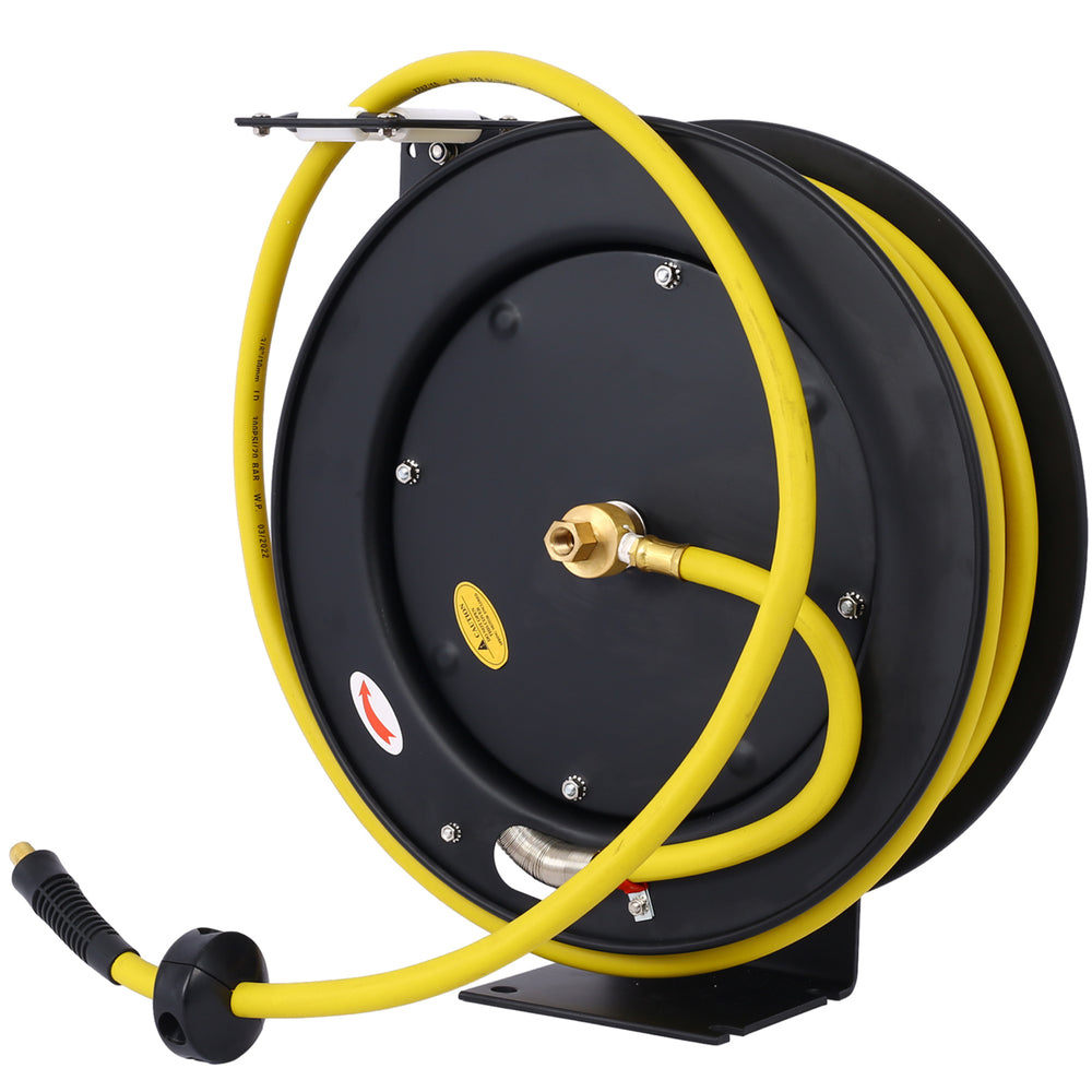 Air Hose Reel Retractable 3/8" Inch x 50' Foot SBR Rubber Max 300PSI Heavy Duty Industrial Steel Single Arm Construction