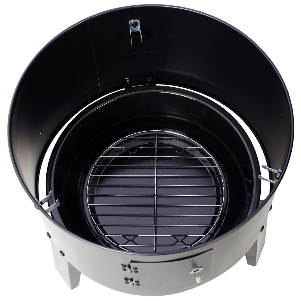- 3-in-1 Multi-Function Charcoal SmokerThis versatile charcoal smoker offers three functions in one: smoker, grill, and fire pit. Choose the function that best suits your cooking needs and enjoy the charm in your patio, backyard, garden, or during your camping adventures.