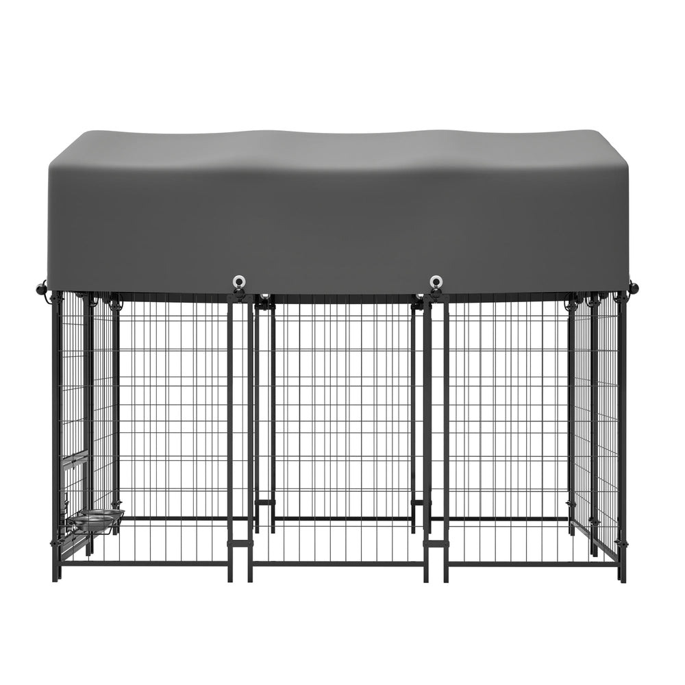 Dog Kennel Outdoor with Roof 4.23'x5.82'x4.83' Welded Wire Enclosure Heavy Duty Dog Crate with UV-Resistant Waterproof Cover Double Lock & Rotating Feeder is backordered and will ship as soon as it is back in stock.