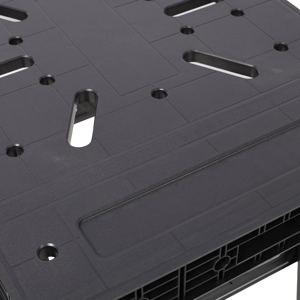 - Equipped with a built-in carrying handle, this workbench offers exceptional portability, enabling you to transport it seamlessly to any job site, project location, or outdoor workspace. Whether you’re tackling DIY projects, repairs, or on-the-go tasks, its compact design and rapid deployment ensure convenience without compromising on functionality.