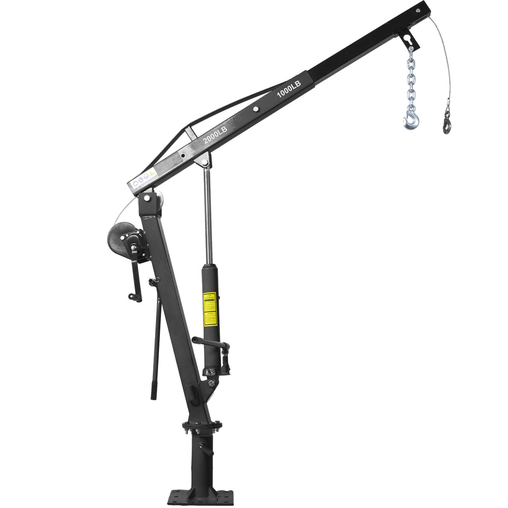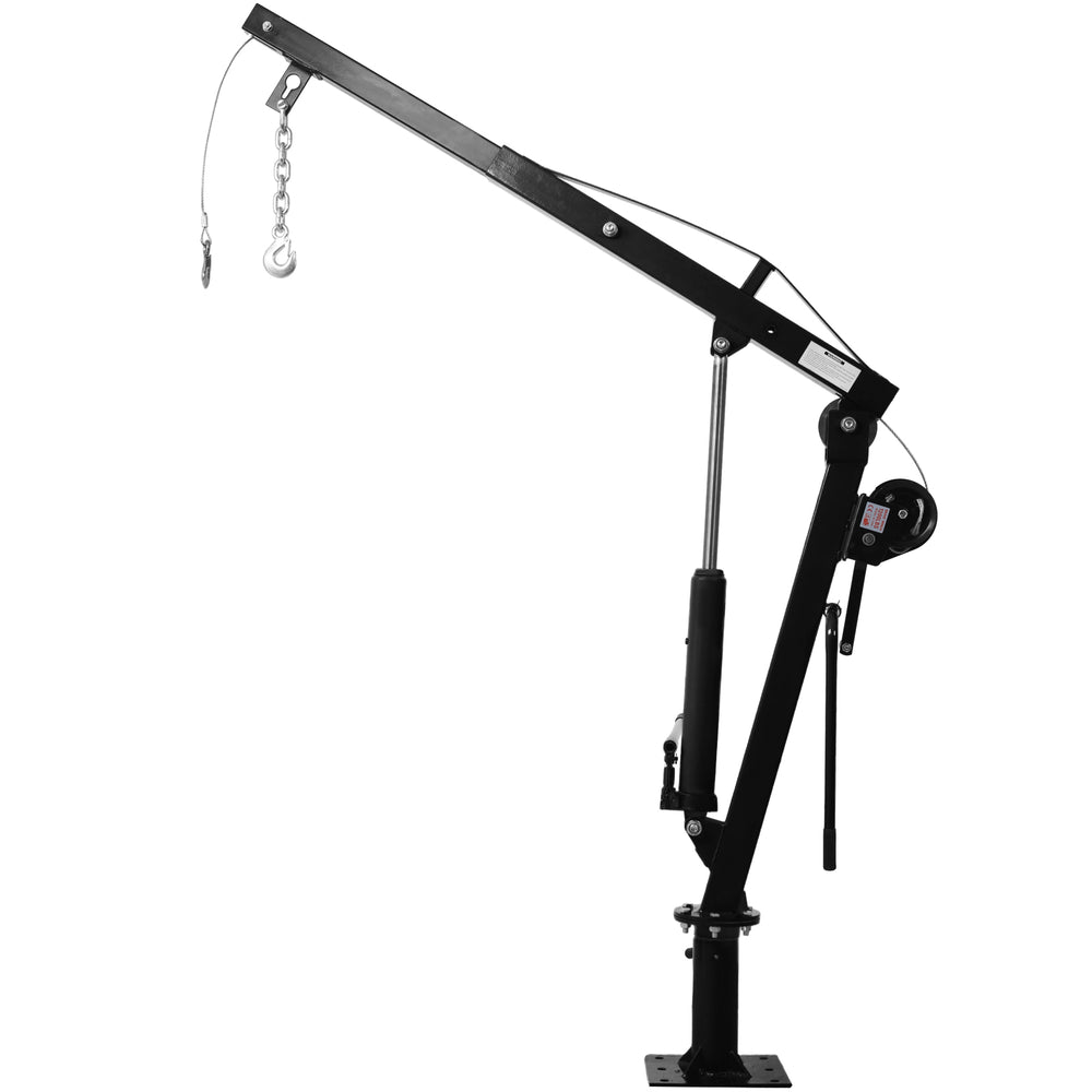 Hydraulic Pickup Truck Crane with Hand Winch Bed Hoist Jib 2000-Lb. Capacity Black