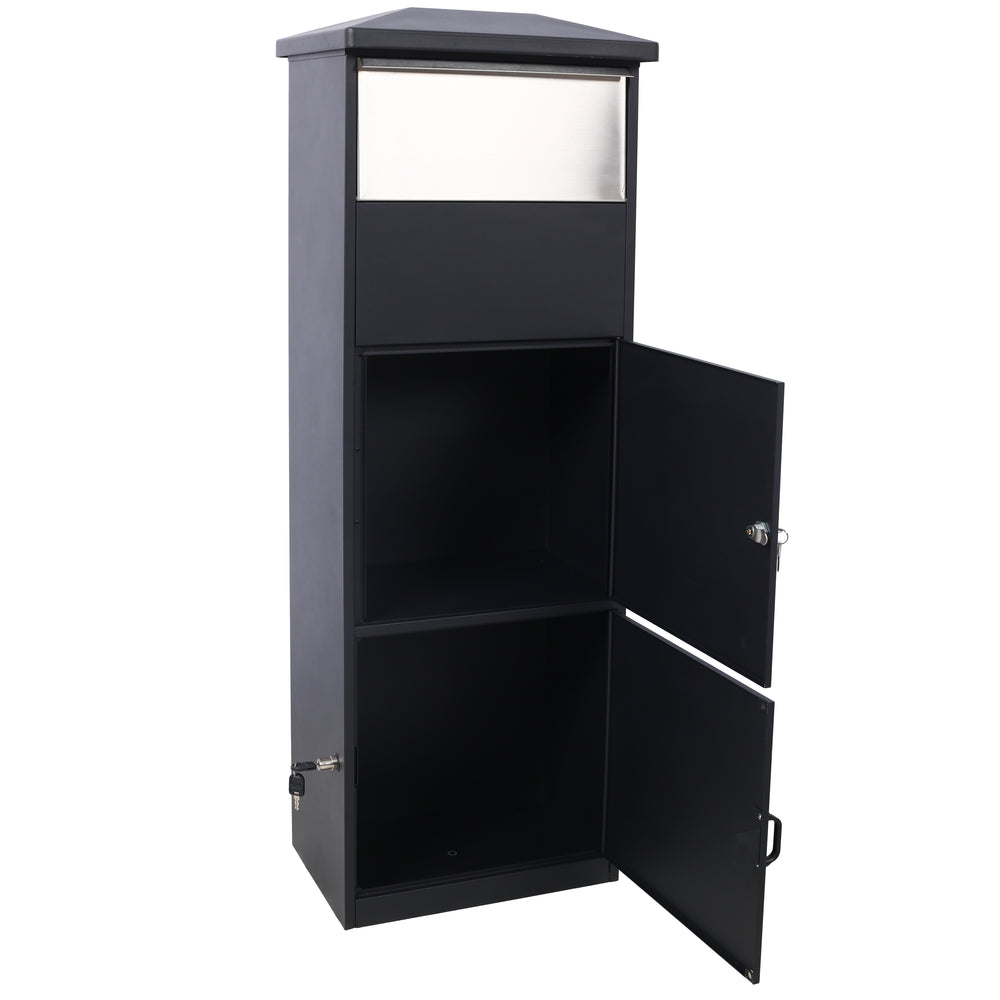 Large Package Delivery Parcel Mail Drop Box Floor Lockable Drop Slot Mail Box with Parcel Compartment--Black
