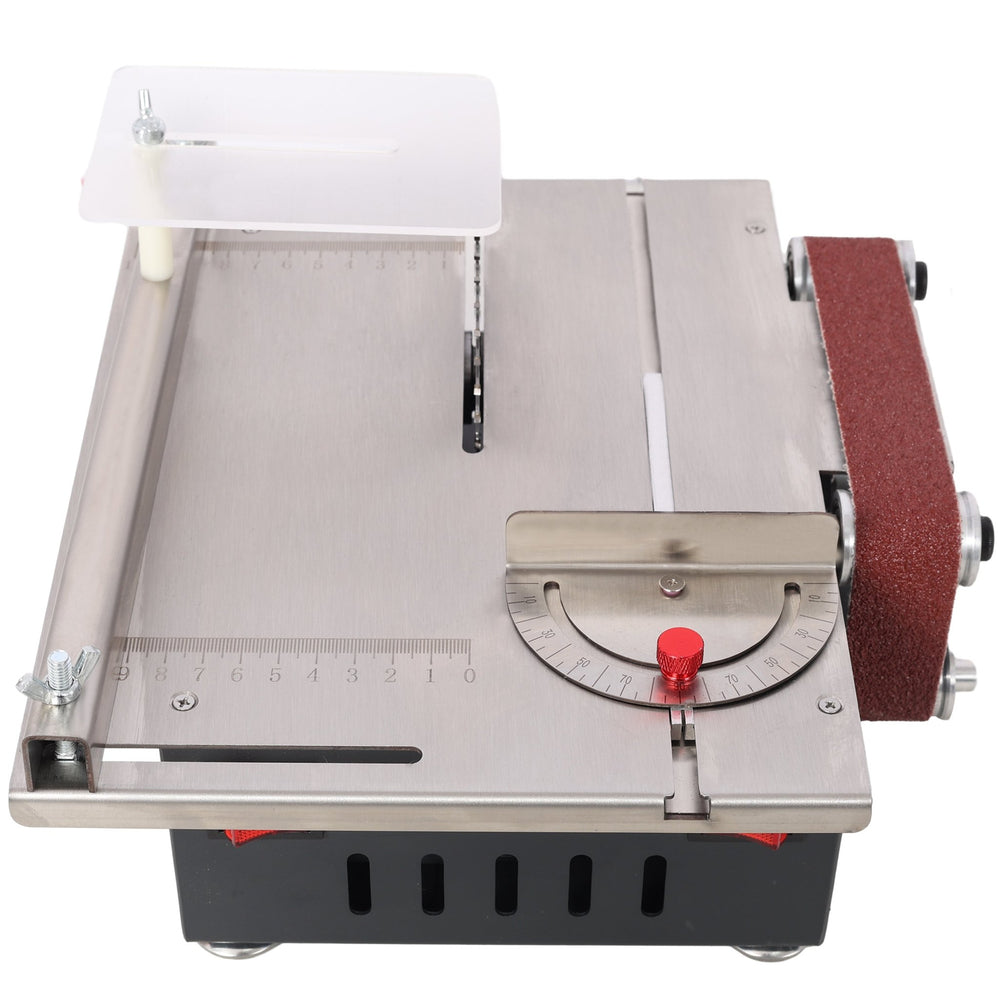 Mini Table Saw Belt Sander Stainless Steel Top 4pcs Blades 10pcs Sanding Blet 7 Gear Adjustable 0-90° Angle