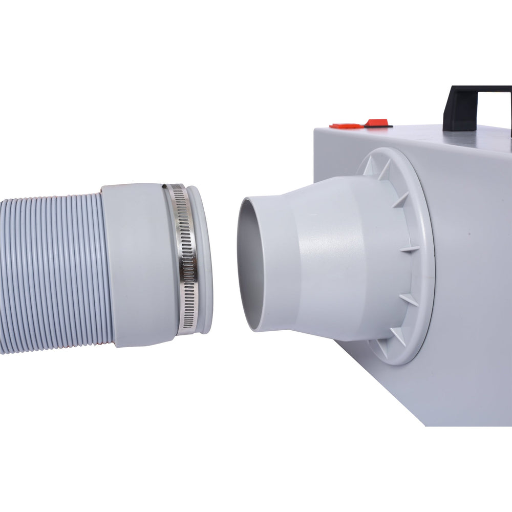 - SPECIFICATIONS – With an air volume of approximately 4m³/min, the DC motor delivers strong performance. When collected, the main machine measures about 42×15×25 cm, and when fully set up for use, it expands to approximately 48×42×36 cm, providing ample workspace for your projects.