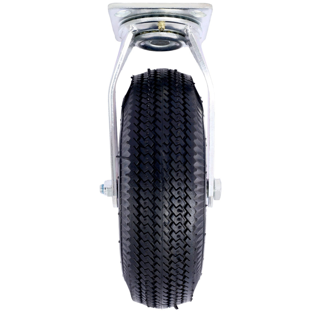 Roda giratória com pneu pneumático de 10 polegadas (2 unidades), cubo de aço com rolamentos de esferas, eixo centralizado com furo de 5/8 de polegada, preta.